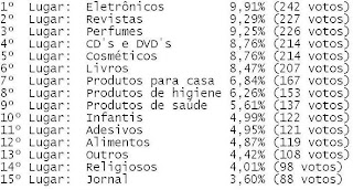 A nossa enquete foi um sucesso. Durante o mês de fevereiro mais de 2400 pessoas respondersm quais os brindes que gostariam que fossem publicados com mais frequência no Amostras Grátis. Vamos fazer o possível para atender o pedido de vocês leitores.